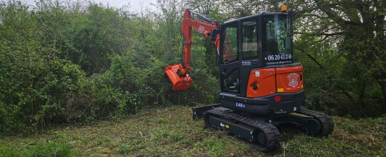 Le broyage de roncier est une étape essentielle dans le cadre du débroussage, notamment lorsqu'il s'agit de nettoyer des terrains envahis par la végétation. L'utilisation d'une pelle mécanique de 4 tonnes permet d'effectuer ces travaux de manière efficace et rapide. Grâce à sa puissance et à sa maniabilité, cette machine peut accéder aux zones difficiles et défricher des surfaces importantes, tout en broyant les ronces et autres végétaux indésirables.